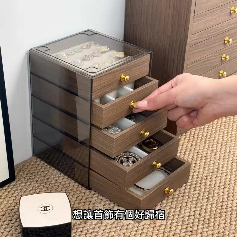【告別首飾糾結!妝檯上的質感收納所】 胡桃木紋 × 植絨內裡|妳的飾品終於有個溫柔的家