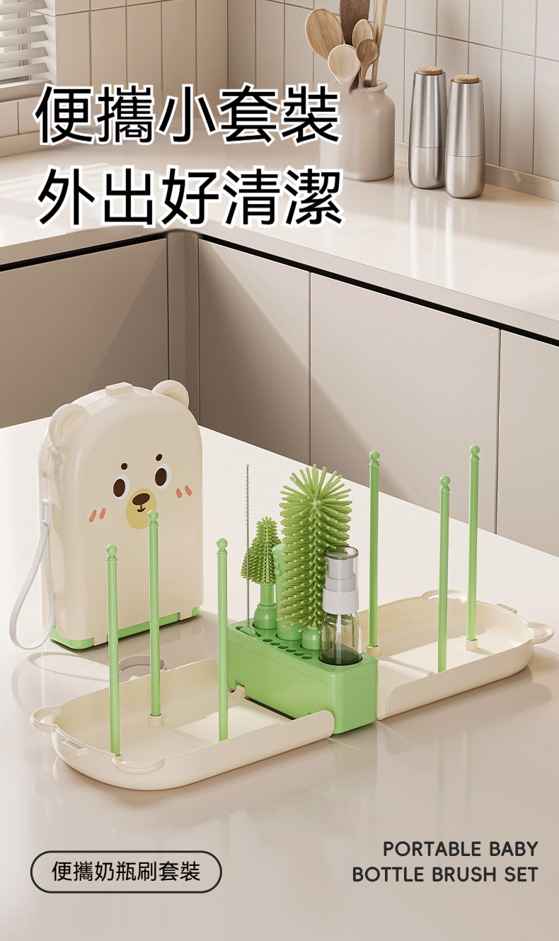 【外出過夜神器!一盒搞定奶瓶清潔】 便攜奶瓶刷套裝|扁平設計,拎了就走