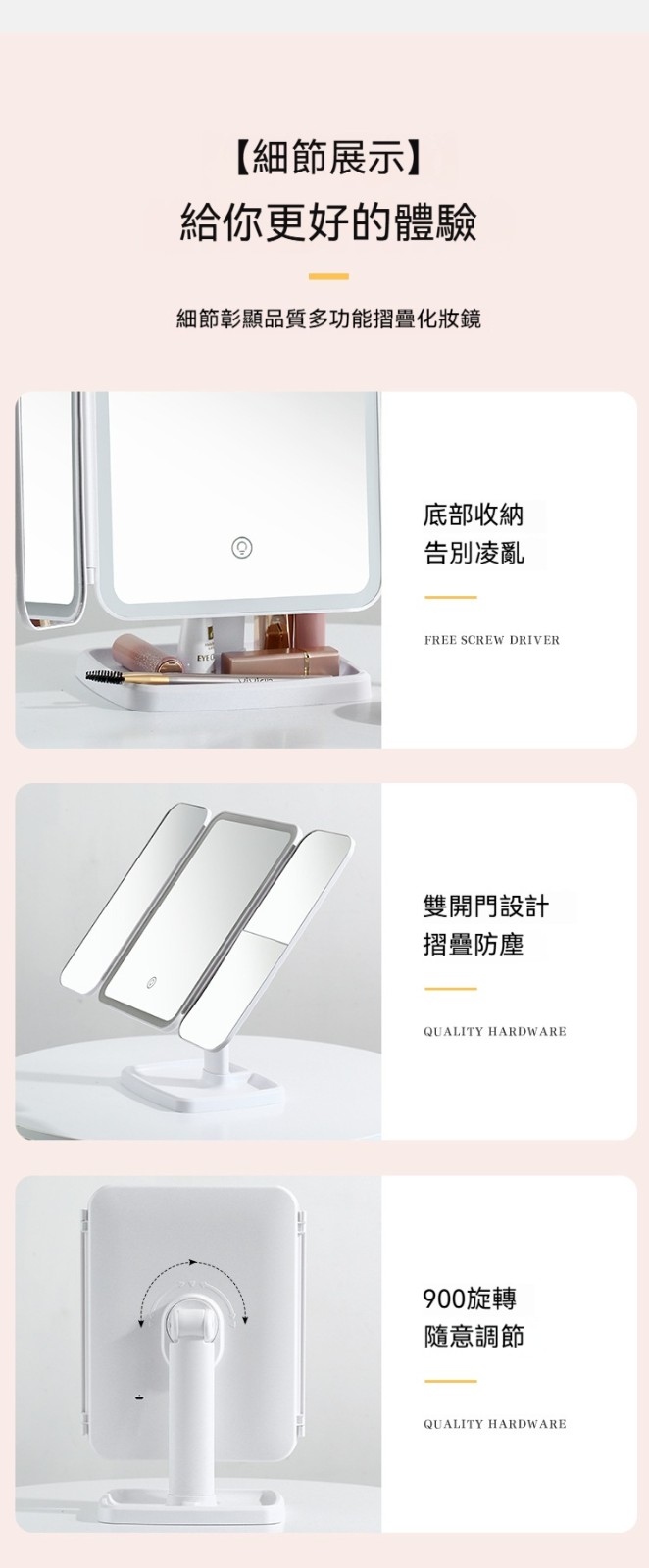 ✨ 化妝看不清?桌面總是一團亂?這台「LED補光收納鏡」,一次解決妳的兩大煩惱!✨
