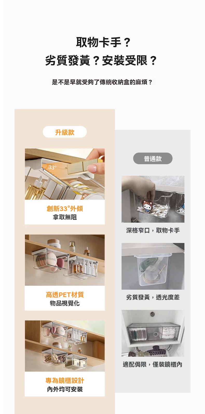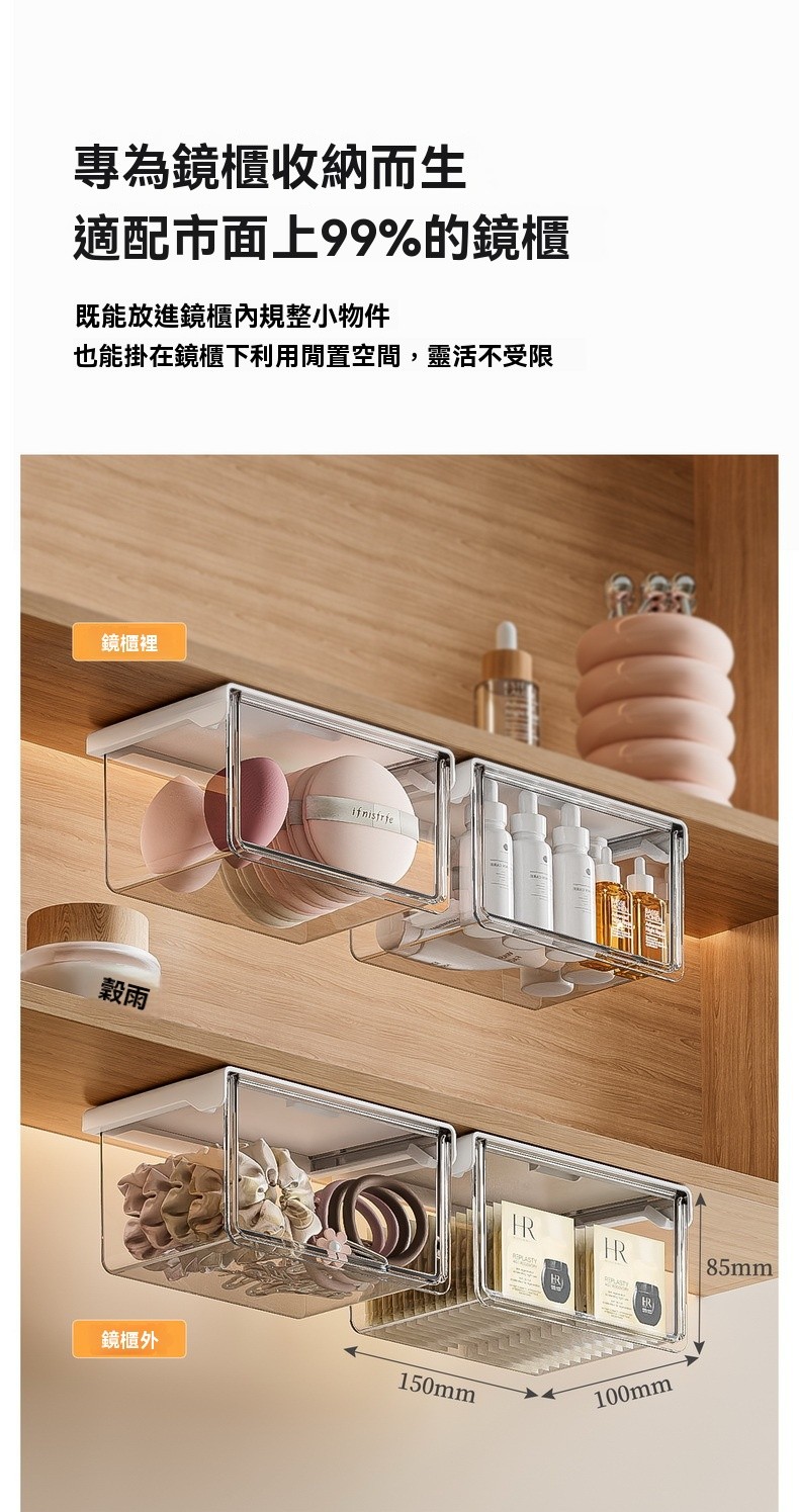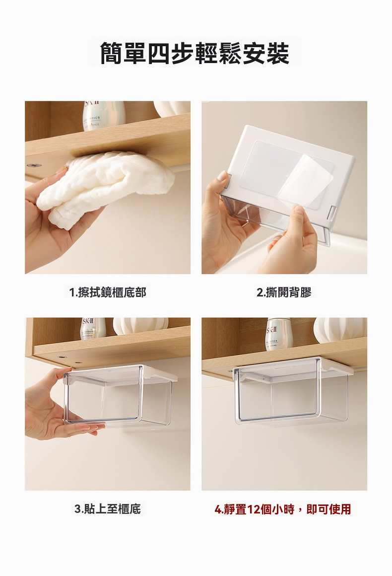 【鏡子後的隱藏空間】33°斜口鏡內收納盒・一貼即用,告別浴室檯面雜亂